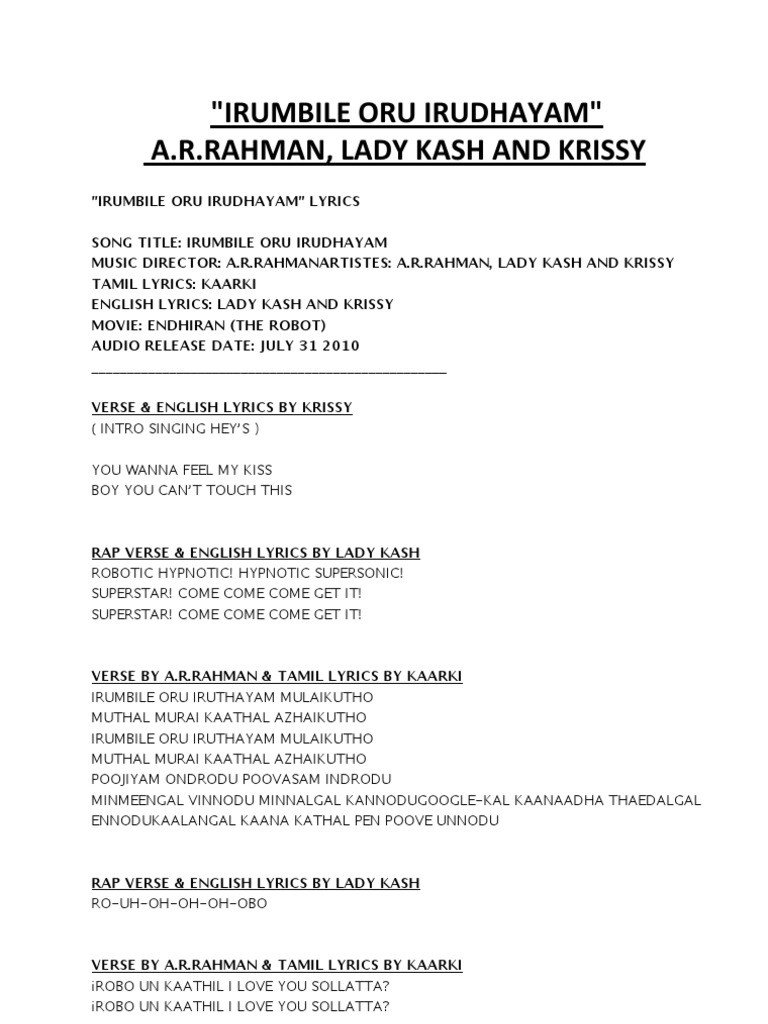 Lyrics Irumbile Oru Irudhayam Songs Popular Music